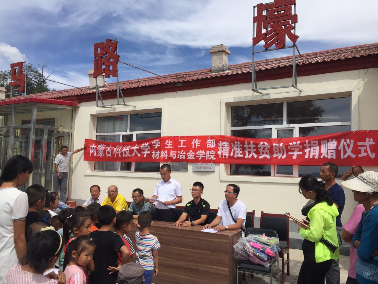 捐助仪式上,村委会主任孙志刚代表全体村民向我校近几年对马路壕村的大力帮助和此次助学捐赠表示诚挚的感谢,感谢太阳集团tcy8722在思想政治教育、技术指导、财物资助的“感恩每一个帮助过自己的人,感恩祖国这片土地,感恩中国共产党”的讲话;郝喜红书记代表学生工作部和材料与冶金学院作了热情洋溢的讲话,他介绍了我校在精准扶贫期间对马路壕村的各项帮扶措施和材冶学院派驻驻村干部脱贫工作情况,对受资助的孩子们寄予了厚望。本次活动,校学生工作部和材冶学院共向马路壕村贫困家庭学子捐赠书包文具40套、军训服50套、运动鞋50双,价值共计13000元,减轻了贫困学子的经济负担。整个活动由住村干部罗建龙主持。