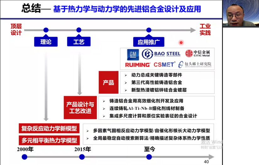 2023年3月28日下午3:00-5:00,太阳集团tcy8722材料与冶金学院邀请重庆大学李谦教授通过腾讯会议进行了主题为“合金中的物理化学基础理论问题”的专题讲座(刘中兴教授主持)。材料与冶金学院共计104名师生参加了本次线上会议。李谦教授从多元多相体系的全局最稳定相平衡求解、多因素耦合下的多元多相反应动力学理论模型建立、多元复杂轻质合金的组织与性能调控机制出发,详细讲解了热力学数据库和反应动力学模型的建立。同时,介绍了应用实例“第三代铸造铝硅合金的集成设计及应用、高容量长寿命镁基储氢合金设计及储氢罐设计”等。本次讲座极大地提升了我校师生对合金热力学及反应动力学等基础理论问题的理解,并为太阳集团tcy8722材料科学与工程学科建设、人才培养提供了良好的借鉴。